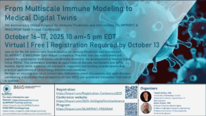 Join us for From Multiscale Immune Modeling to Medical Digital Twins, the 5th Anniversary Global Alliance for Immune Prediction and Intervention (GLIMPRINT) & IMAG/MSM Open Virtual Conference. This free, two-day online event will explore the progression from multiscale immune models to the development of Medical Digital Twins. This conference provides an opportunity to discuss mechanistic and AI/ML models, digital twins, essential infrastructure, regulatory and funding considerations, and practical applications in immunology and precision medicine.